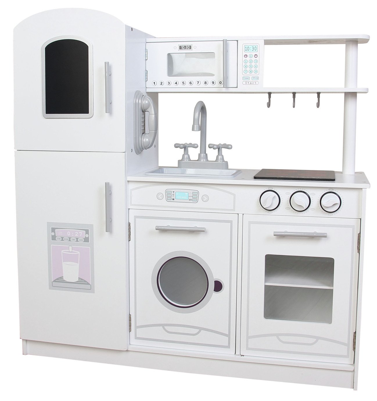 Packed with fun features such as a sink an oven with shelf and a washing machine with opening doors and clicking dials this great play kitchen is the perfect way to get children engaged with everyday tasks from a young age. Argosie has thousands of fantastic products for you to choose from across thirteen online categories. Play-Kitchen-for-Kids with 18 Pcs Toy Food Cookware Accessories Playset Wooden Chef Pretend Play Set for Toddlers with Real Lights Sounds 47 out of.