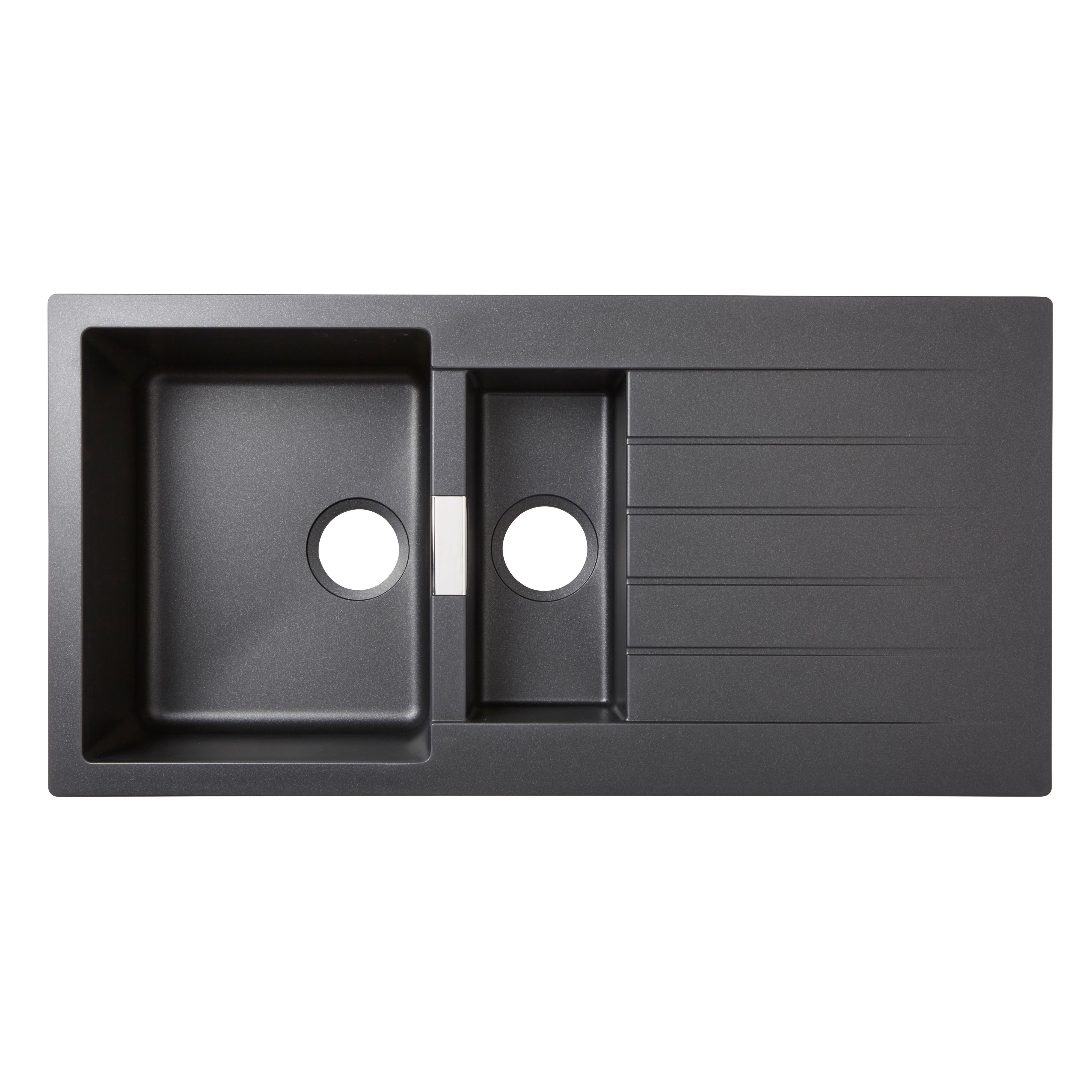 Cooke Lewis Ising Black Resin 15 Bowl Sink drainer 31 120. Single Bowl Inset Black Granite Kitchen Sink with Reversible Drainer - Enza Madison. Abode Xcite 15 Bowl Reversable Granite Composite Kitchen Sink - Metallic Black 0 259.