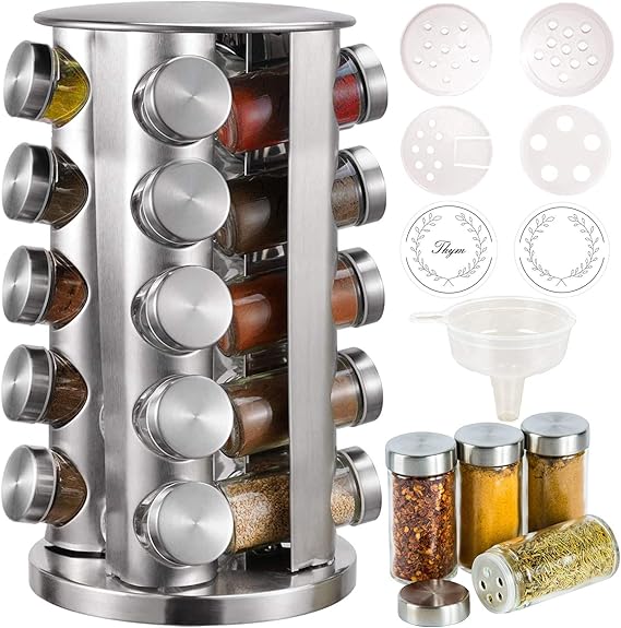 Revolving 20 Jar Spice Jar Rack Set Stainless Steel Spice Rack Revolving Spice Rack Spice Jars