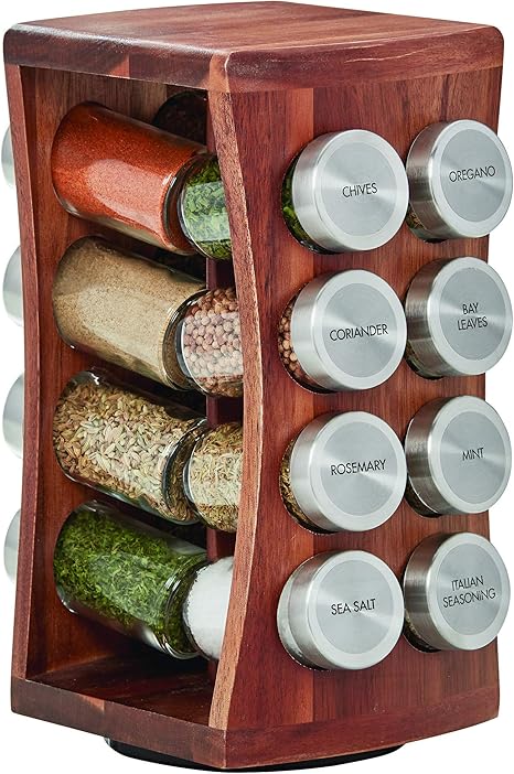 Showing slide 1 of 8 - Best Selling. Kamenstein 16 Jar Wood Stainless Steel Spice Rack Free Standing or Hanging. Lazy Susan Spice Racks - Kitchenaholic.