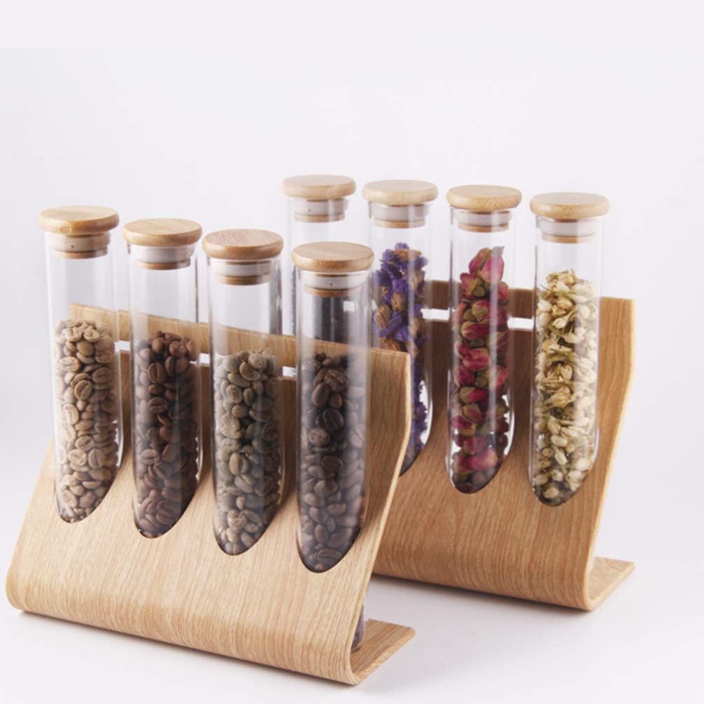Amazon Com Qwer Glass Spice Test Tube Set Multi Function Creative Wooden Sealed Storage Test Tube Spice Display Stand For Coffee Beans Herbs Seasoning Container Storage Box Home Kitchen