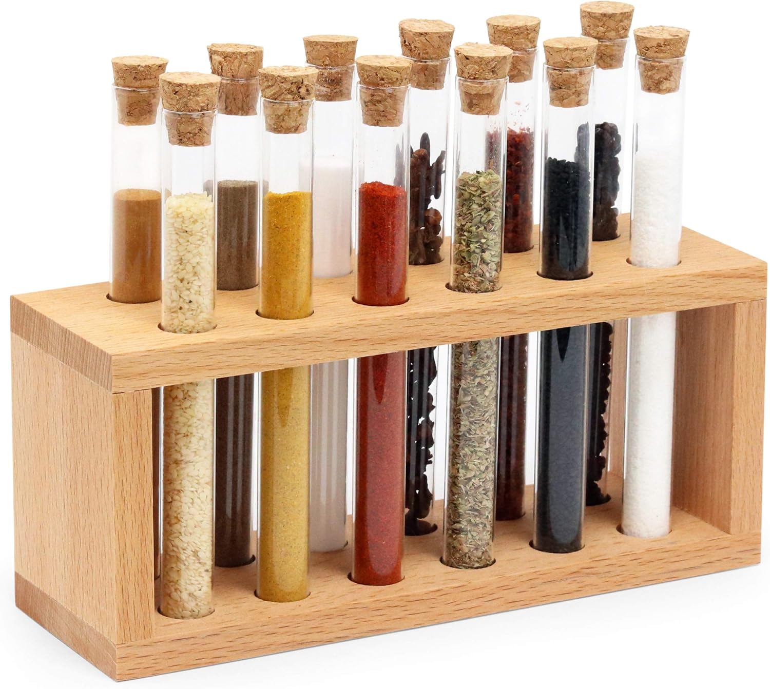 Chemistry Spice Rack Set Glass Test Tubes With Cork Stoppers Wooden Herb Organizer Elegant Kitchenware Seasoning Container 12 Tubes Amazon Co Uk Diy Tools
