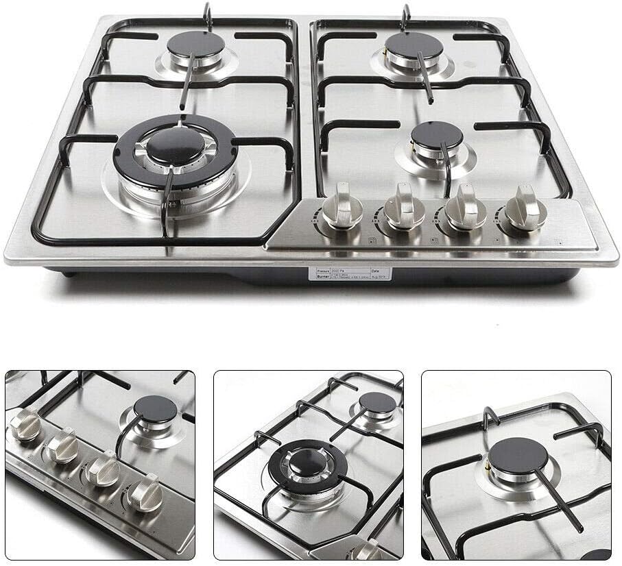 Amazon Com 23 34 Stainless Steel Gas Cooktop Built In Gas Stove Ng Lpg Gas Hob Restaurant Kitchen Burner Gas Stovetop With Thermocouple Protection And Easy To Clean 4 Burner 58 52cm Kitchen Dining