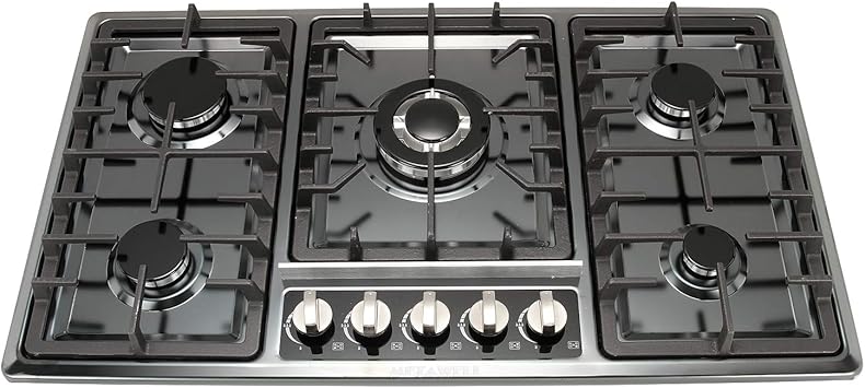 Amazon Com 34 Inch Gas Cooktop 5 Burners Gas Stove Gas Hob Stovetop Black Stainless Steel Cooktop Cast Iron Grates Built In Gas Stove Top Lpg Ng Gas Cooktop Thermocouple Protection Electronics