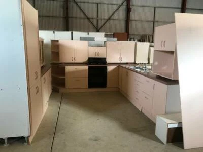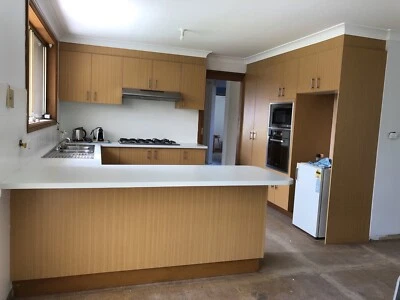 Buyer to dismantle entire kitchen. Complete second hand kitchen with stone benchtops 2-pac acbinetry gas cooktop electric oven double stainless steel sink. Complete Kitchen UnitsCupboards and Worktops and Sink.